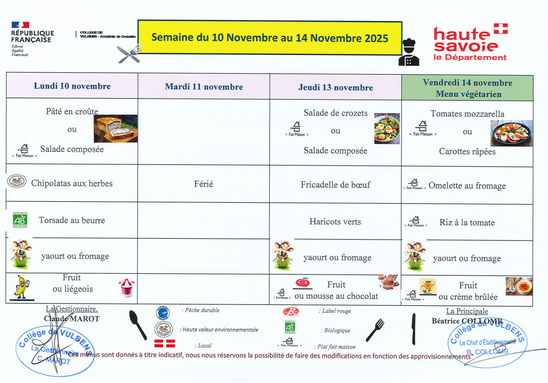 Menu du restaurant scolaire semaine du 10 novembre