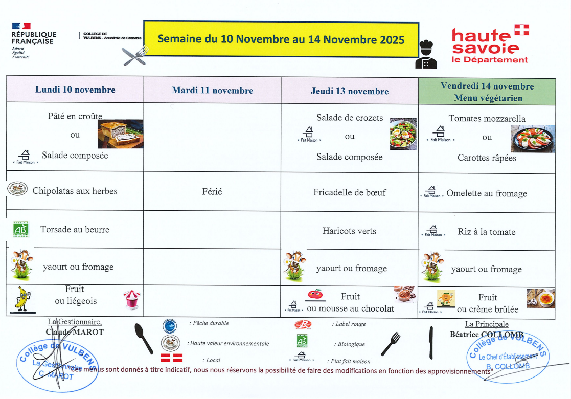 Ci-joint (cliquer en bas de la page) le menu et les allergènes pour la semaine du 10 novembre
