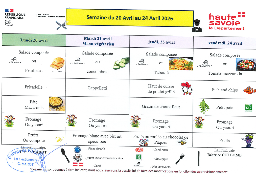 Ci-joint (cliquer en bas de la page) le menu et les allergènes pour la semaine du 20 avril