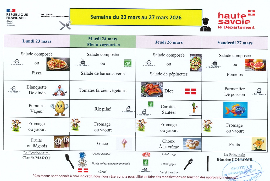 Ci-joint (cliquer en bas de la page) le menu et les allergènes pour la semaine du 23 mars