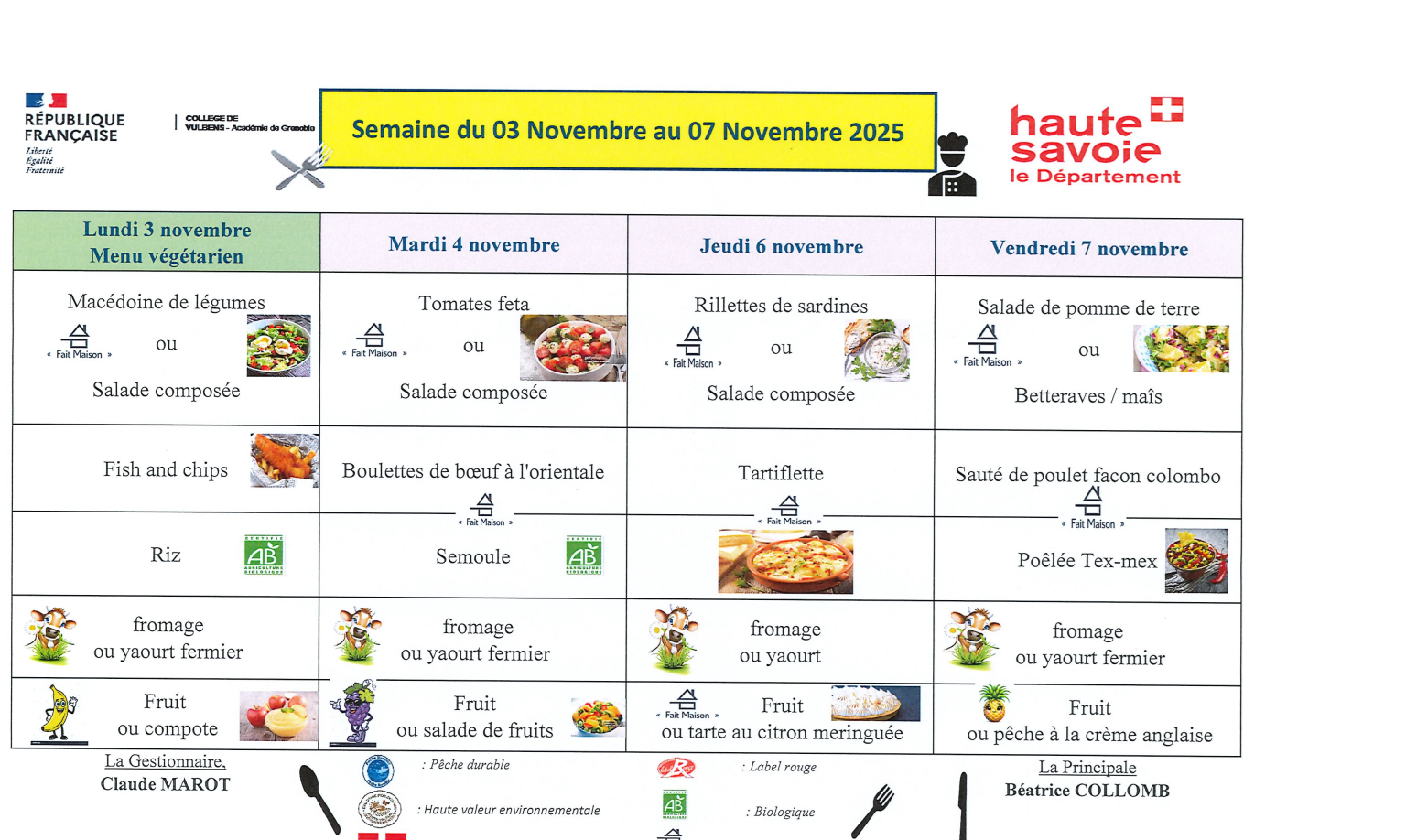 Ci-joint (cliquer en bas de la page) le menu et les allergènes pour la semaine du 3 novembre