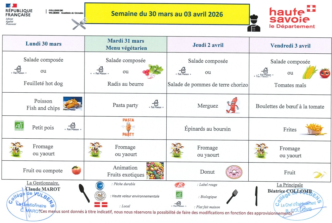 Ci-joint (cliquer en bas de la page) le menu et les allergènes pour la semaine du 30 mars