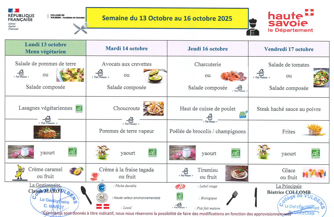 Ci-joint (cliquer en bas de la page) le menu et les allergènes pour la semaine du 13 octobre