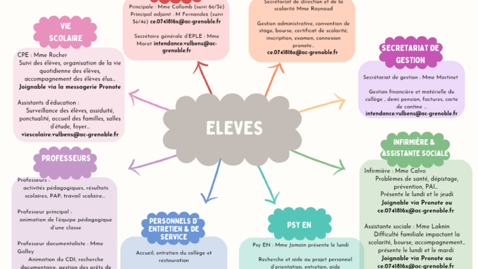 Par SABRINA ROCHER, publié le mercredi 19 novembre 2025 21:16 - Mis à jour le lundi 24 novembre 2025 08:08Cet organigramme montre qui fait quoi dans le collège et comment contacter chaque service. Il vous aide à identifier rapidement le bon interlocuteur. -