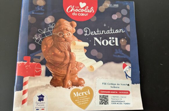 Le Foyer Socio-Educatif vous propose d'acheter des chocolats avec Initiatives cœur. Un pourcentage des ventes revient au FSE pour financer différents projets, jeux, livres dans l'établissement.