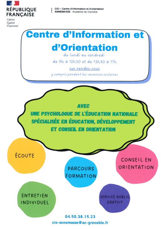 Le CIO (Centre d'Information et d'Orientation) d'Annemasse est ouvert pendant les vacances !