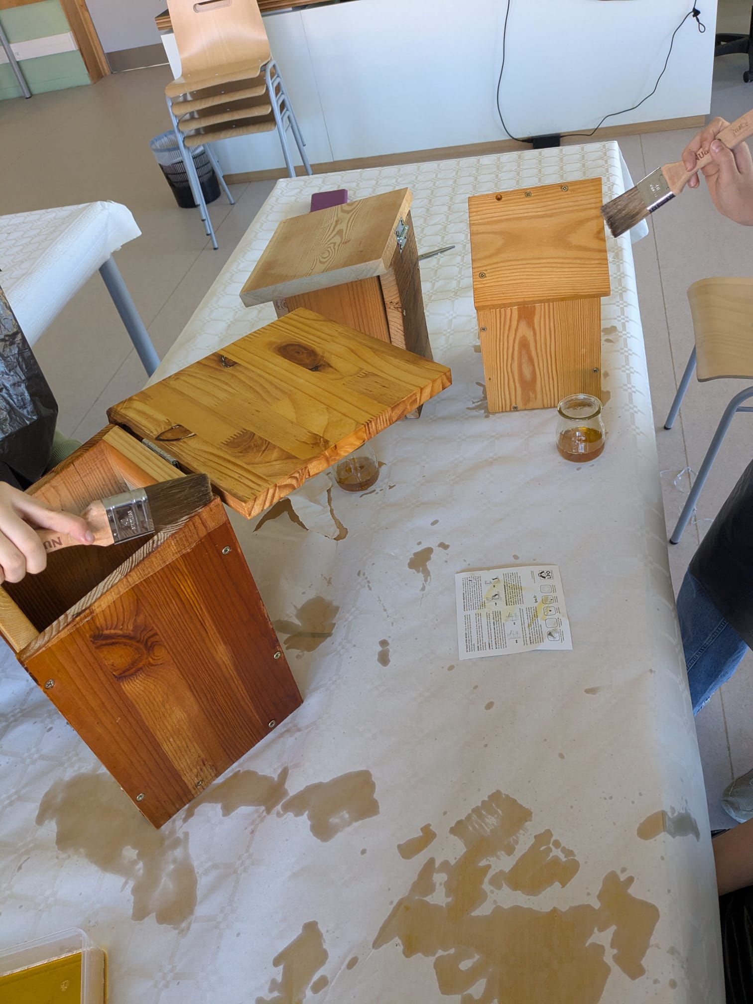 En mars, de l'huile de lin a été appliquée sur les nichoirs pour protéger le bois.